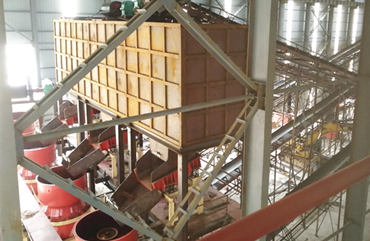 在碎石生產線中,料倉幾乎不可缺少,它是非常重要的部件,起中轉、緩沖、調節的作用。正是由于料倉的存在,破碎設備才能連續、均勻、順利的